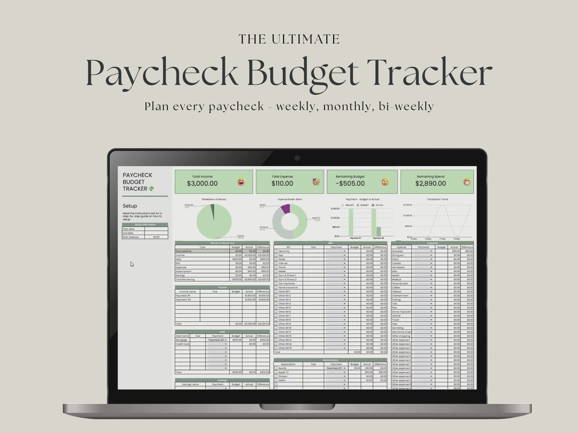 Paycheck Budget Tracker – Google Sheets Weekly & Biweekly Planner